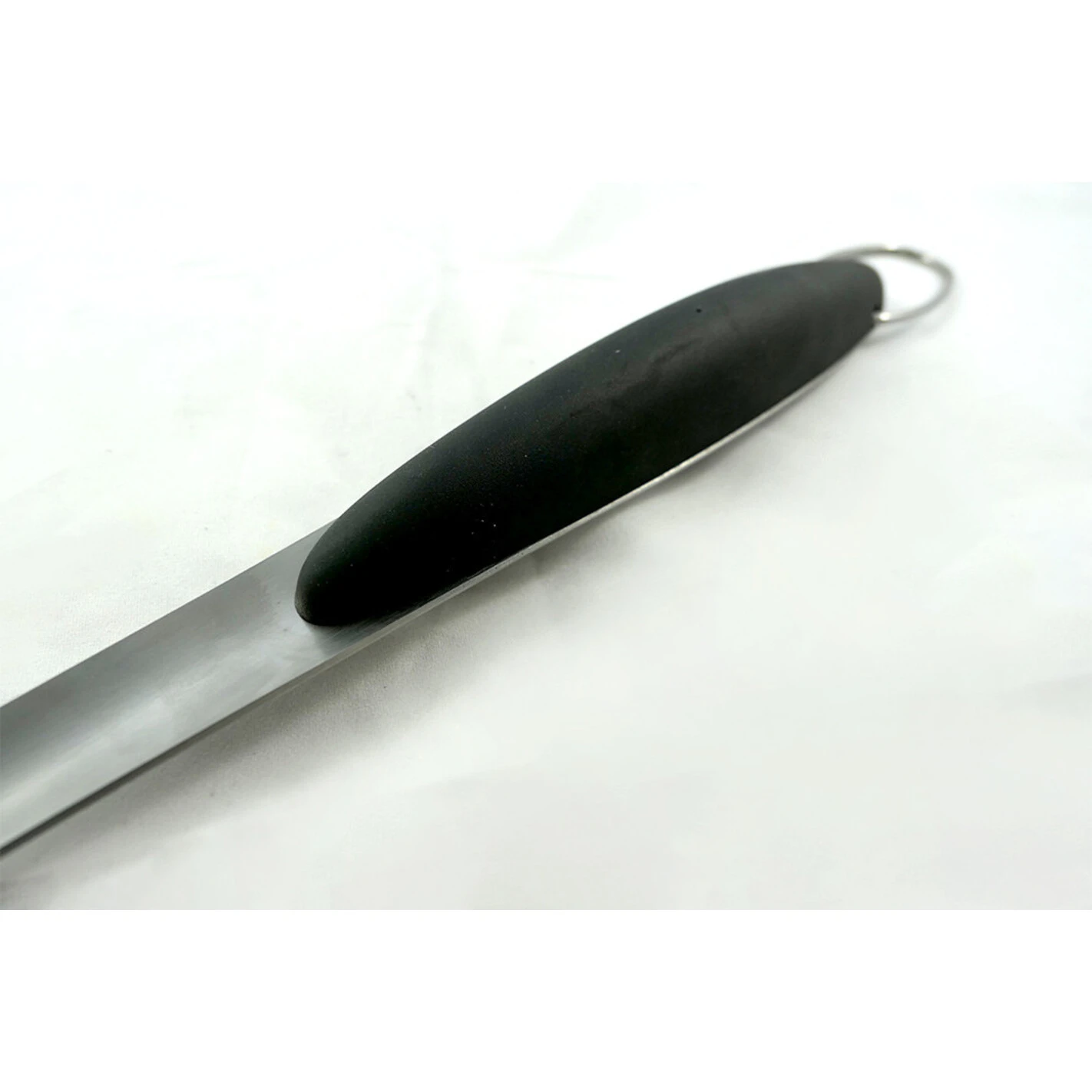 La fourchette équipée d’un crochet se suspend sur l’un des porte-ustensiles du barbecue afin de l’avoir à portée de main à tout moment.