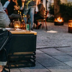 Transformez votre brasero Cube Höfats en un meuble de jardin très design grâce à l’ajout de cette tablette en bambou parfaitement adaptée.
